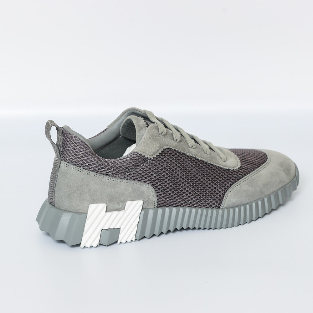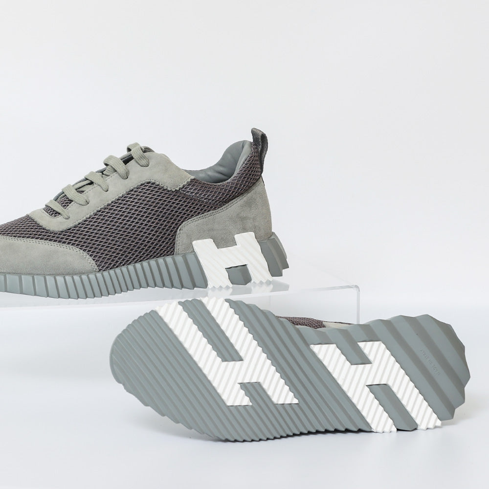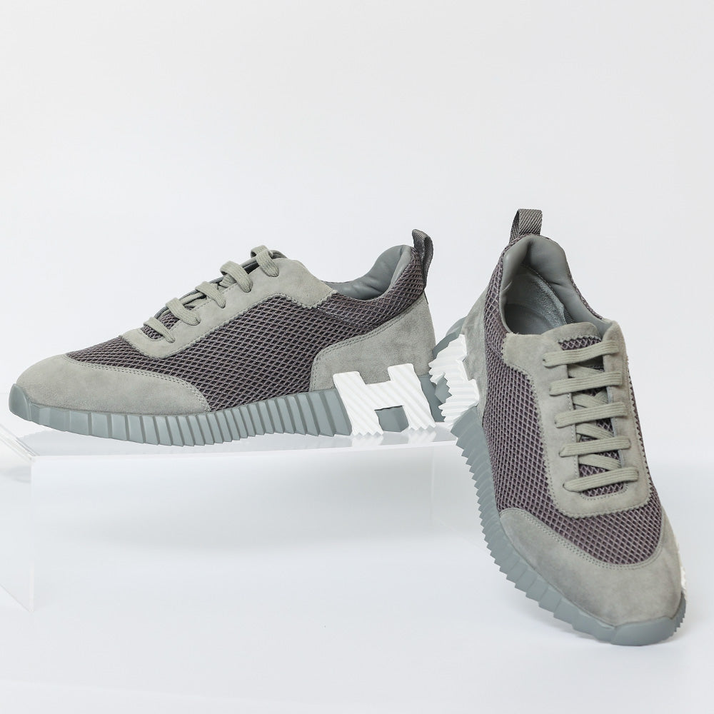 Elevate your sneaker game with these authentic grey HERMES Bouncing Sneakers, meticulously crafted from air mesh and luxurious suede goatskin. Combining a light sole with a striking contrasting design not only adds a modern edge but also ensures a versatile, fashion-forward look. Complete with grey laces  and matching rubber soles, these sneakers are the epitome of style, comfort, and authenticity, making them an essential addition to your wardrobe.