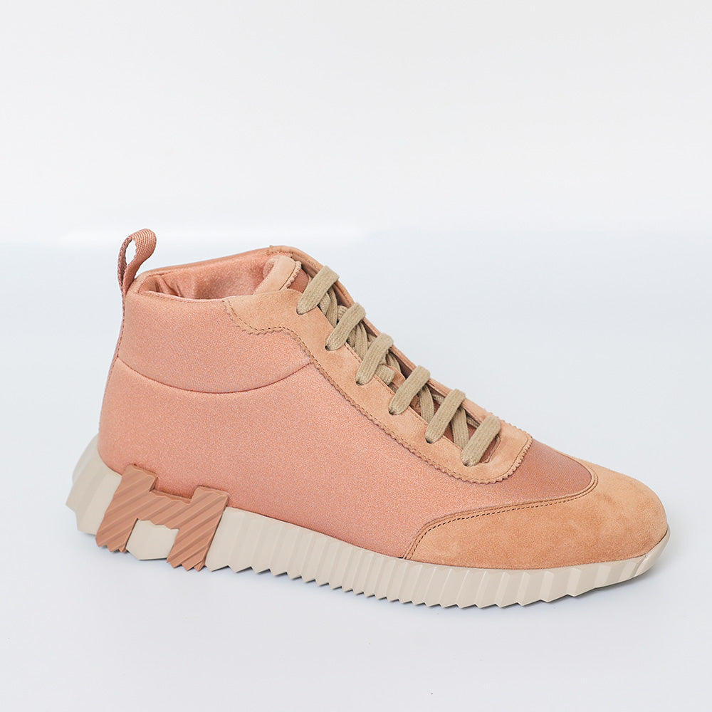 Indulge in the epitome of modern luxury with HERMES High-Top Sneakers, a fusion of satin-finish technical jersey and plush velvet goatskin. These sneakers exude contemporary allure, their sleek design paired with an ultra-light graphic sole delivering a dynamic silhouette that's as comfortable as it is stylish. Upgrade your style with this perfect blend of elegance and modernity.