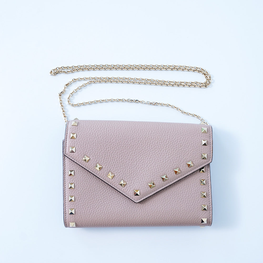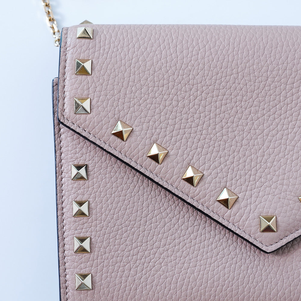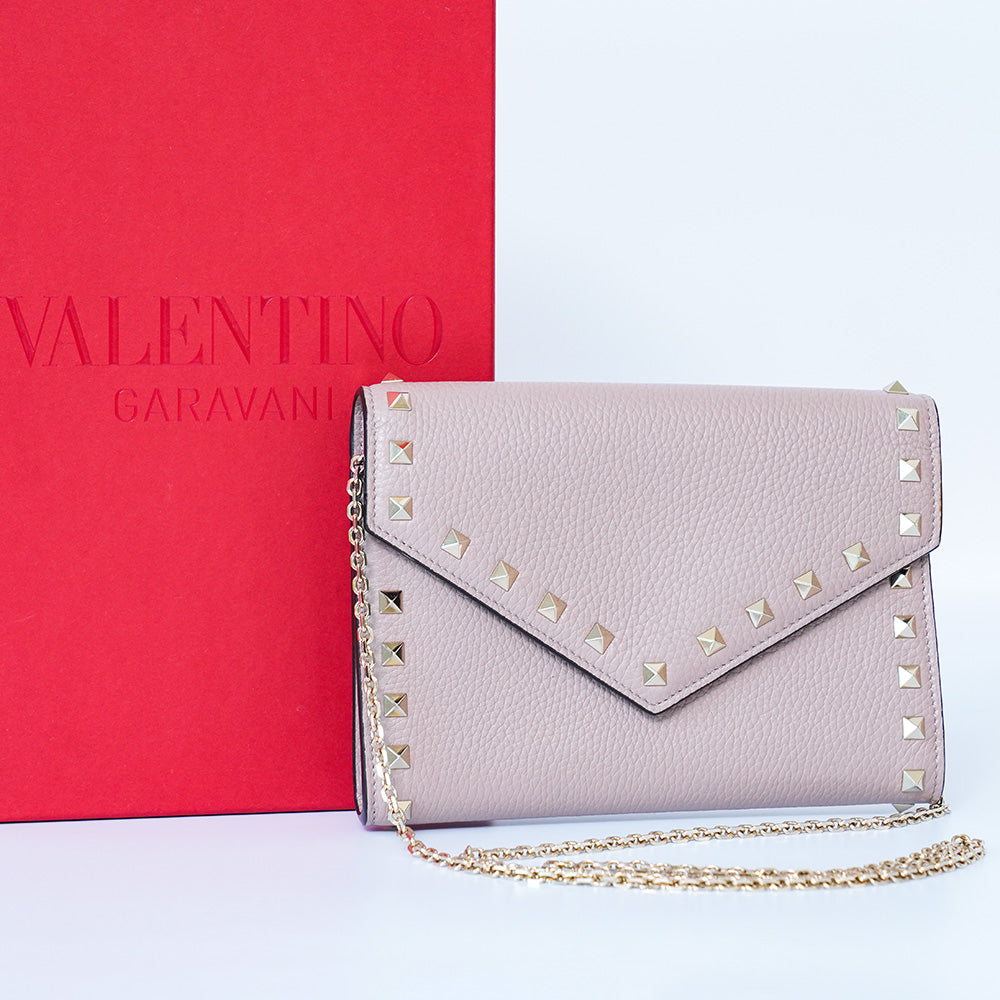 VALENTINO WHITE LEATHER ROCKSTUD ENVELOPE CLUTCH VALENTINO