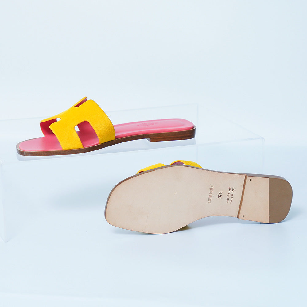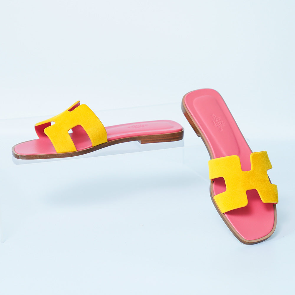 The Hermes Oran Sandals epitomize understated luxury with their sleek design and impeccable craftsmanship. The sandals are crafted from premium leather. These iconic sandals feature the signature "H" cutout, adding a touch of sophistication to any ensemble. The comfortable flat sole and slip-on style make them perfect for casual and elegant occasions. Effortlessly chic, the Hermes Oran Sandals are a timeless addition to your footwear collection.