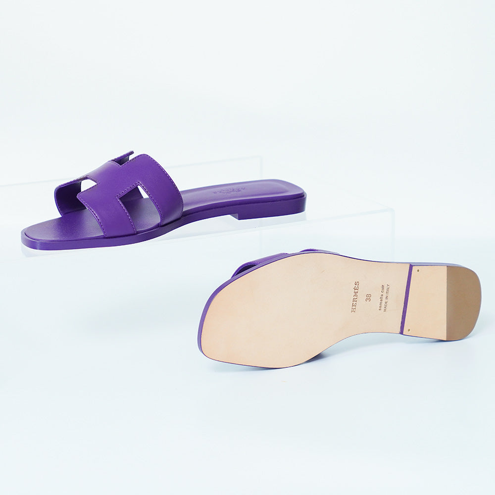 The Hermes Oran Sandals epitomize understated luxury with their sleek design and impeccable craftsmanship. The sandals are crafted from premium leather. These iconic sandals feature the signature "H" cutout, adding a touch of sophistication to any ensemble. The comfortable flat sole and slip-on style make them perfect for casual and elegant occasions. Effortlessly chic, the Hermes Oran Sandals are a timeless addition to your footwear collection.
